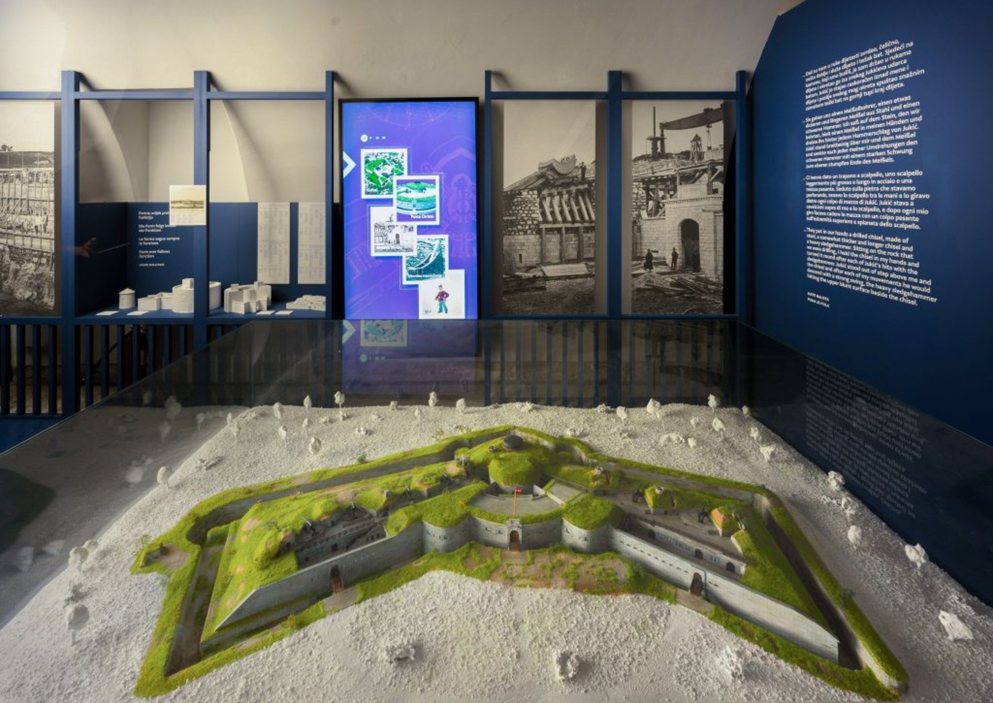 Izložba je i u multimedijskom smislu inovativna, kako bi i na taj način zainteresirala posjetitelje za temu koju obrađuje i za lokalitete na kojima se tvrđave nalaze. Izrađena je interaktivna maketa južne Istre u kojoj je pohranjena sva prikupljena dokumentacija o sustavu i koja će služiti posjetiteljima kao svojevrsna info zona gdje mogu dobiti informacije o pulskim utvrdama i ostalim građevinama.